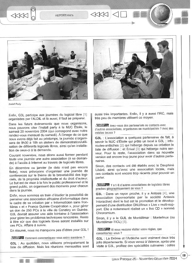 Un article sur G3L dans le magazine linux pratique