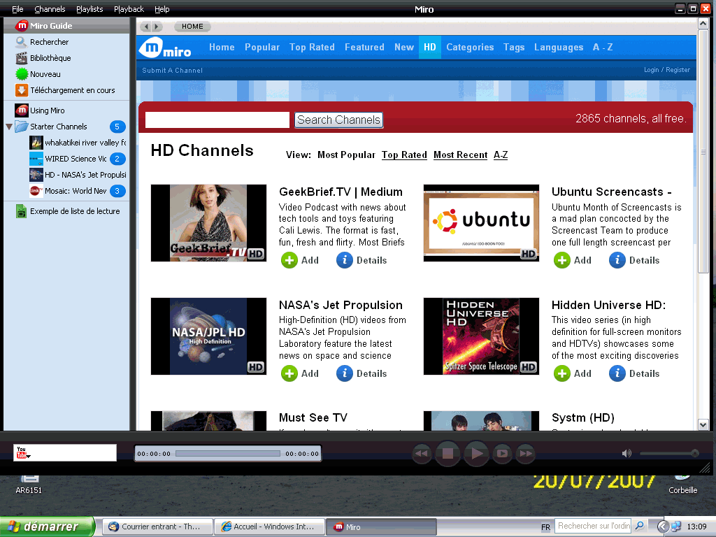 Une fois l'installation faite, je suis allé regarder les onglets de la page de droite et je suis tombé là-dessus (Onglet HD)...
